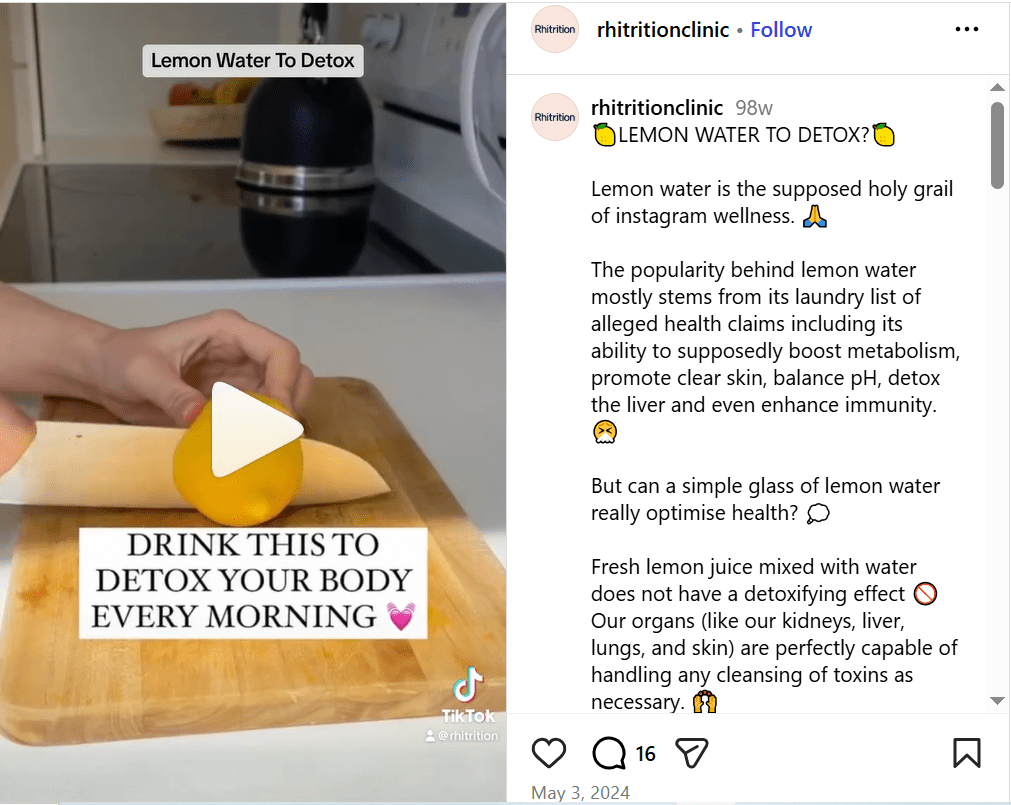 1:00 pm: Lunch break. I scroll through Instagram and find a video that talks bout how lemon water allegedly detoxes your body.