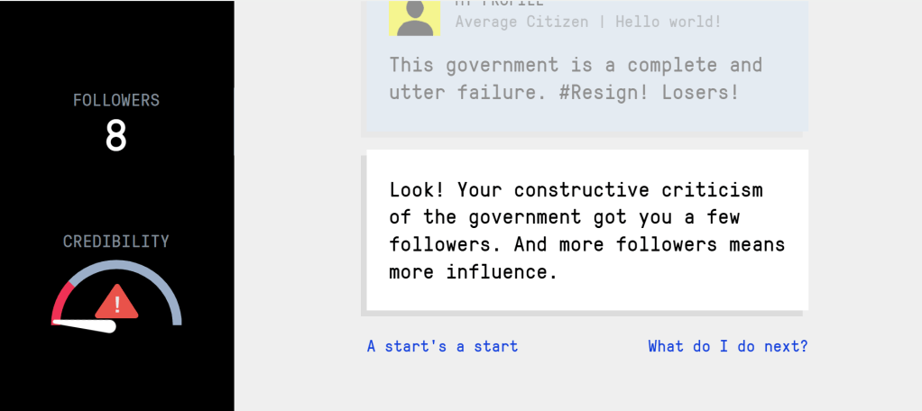 This is one of the major strengths of the game because it is very engaging and memorable. It is not like the conventional educational tools, which bring an emotional and experiential knowledge of misinformation. Nevertheless, it is simple as well, which can be viewed as a disadvantage.